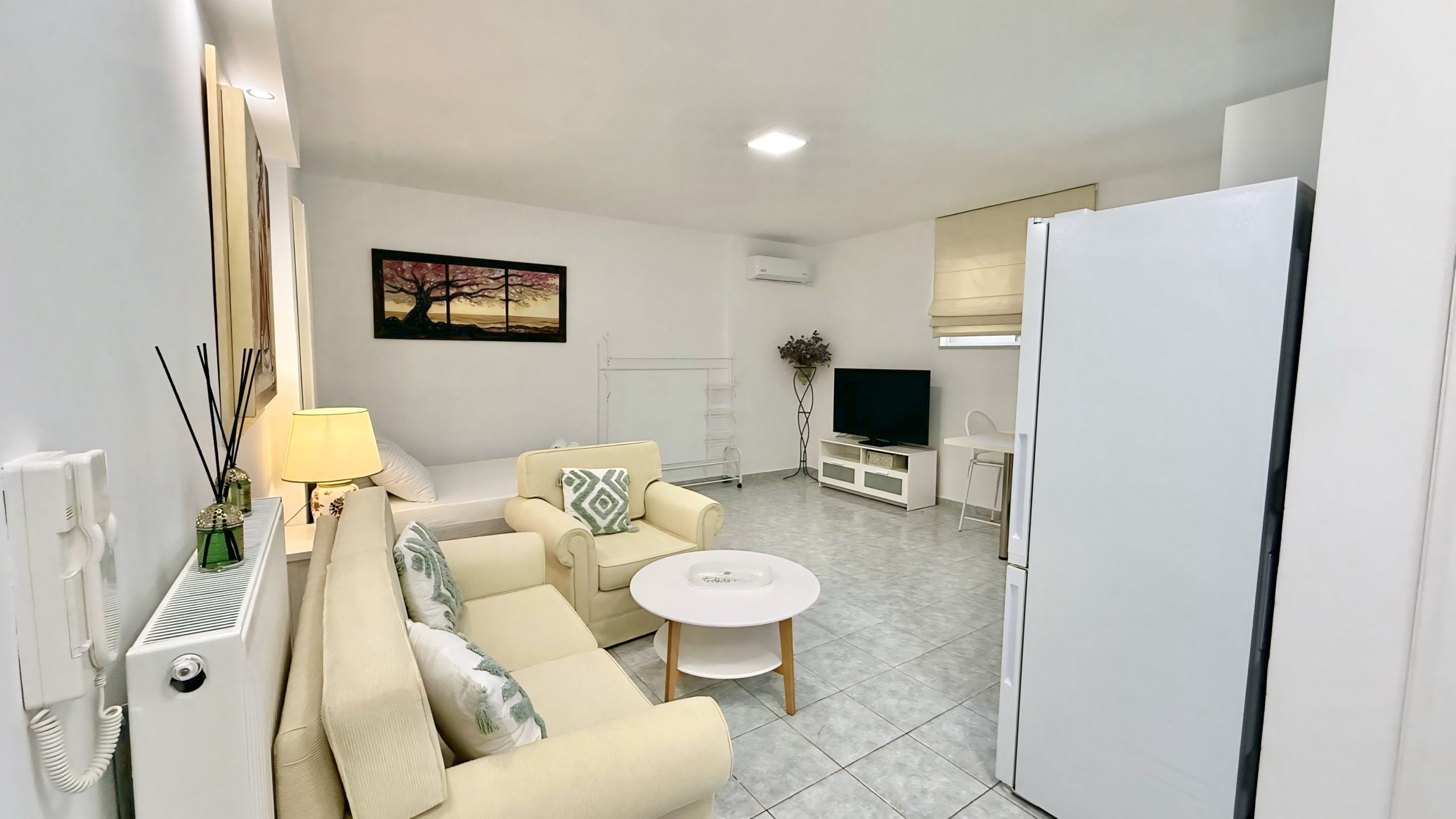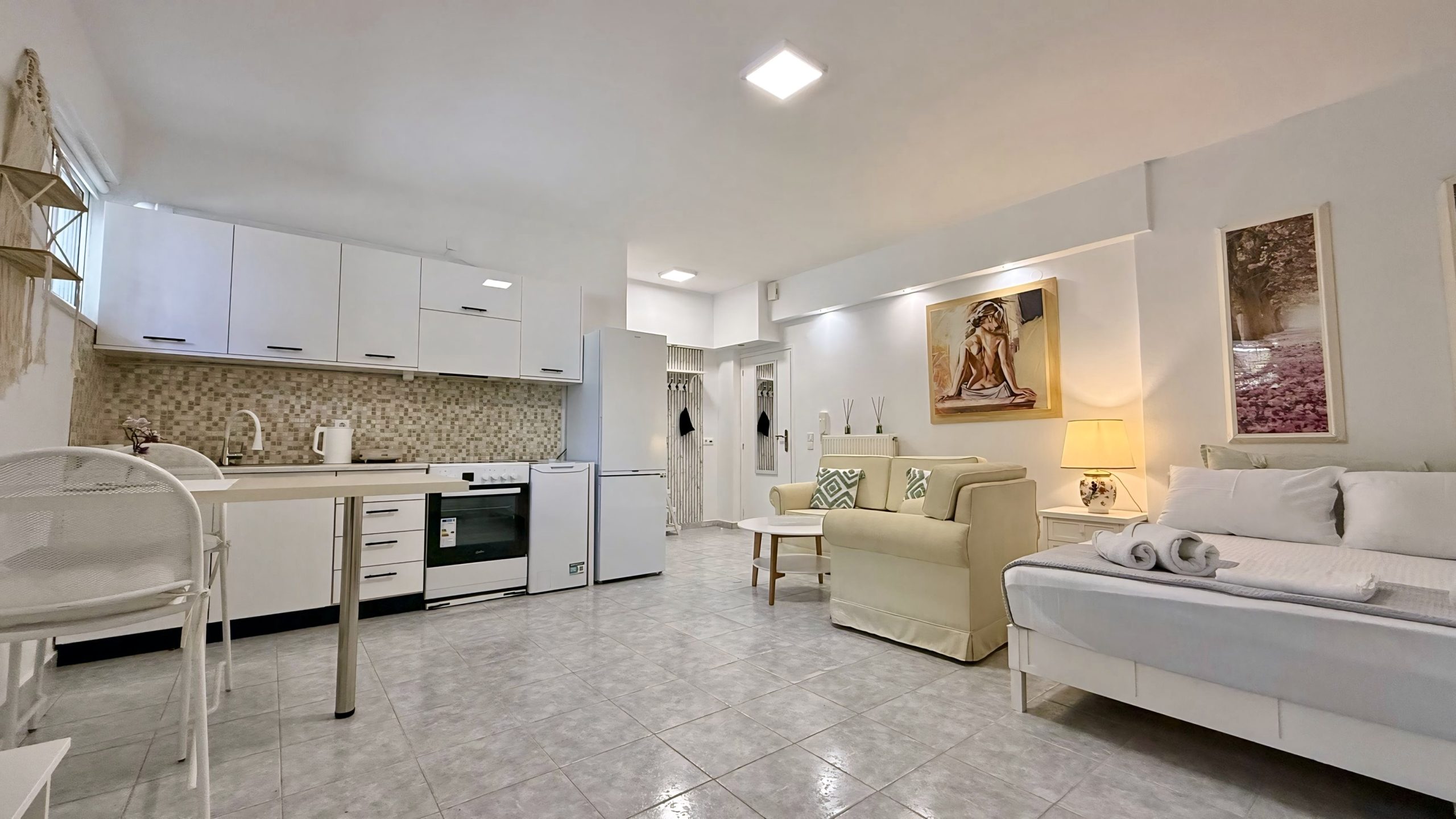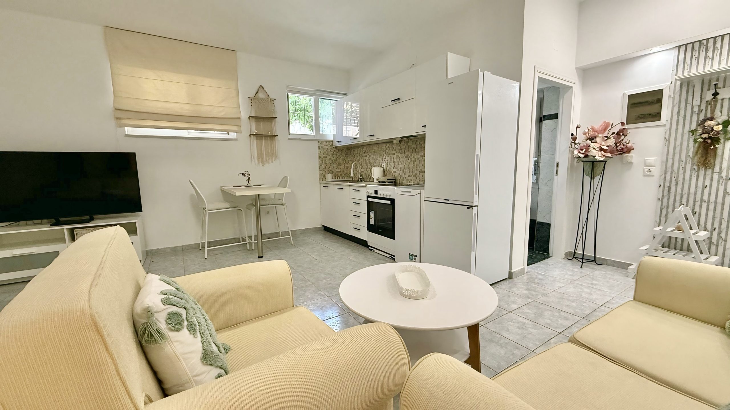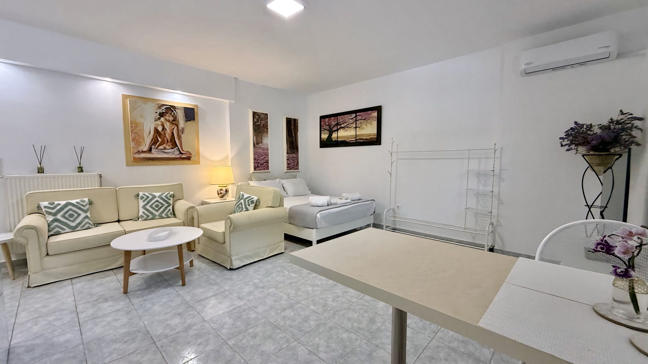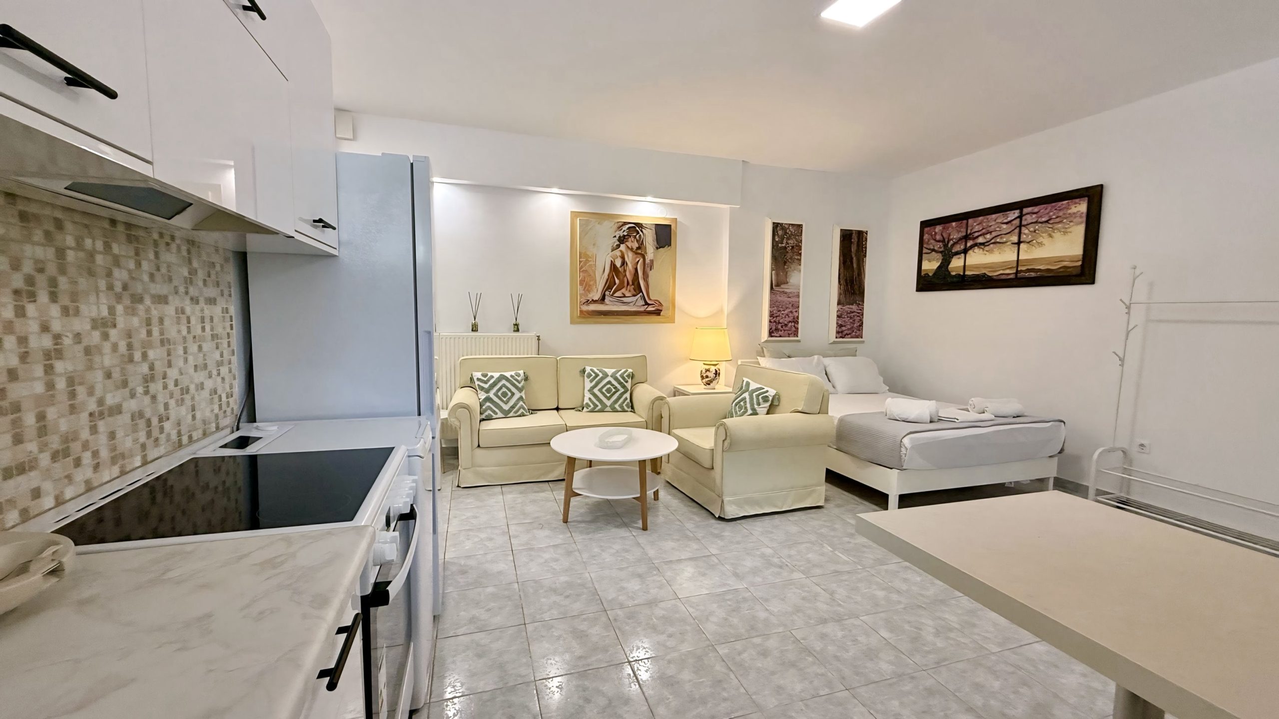 Ο ενιαίος χώρος περιλαμβάνει ένα άνετο διπλό κρεβάτι, καθιστικό και πλήρως εξοπλισμένη κουζίνα, ενώ το μπάνιο είναι ανεξάρτητο. Το στούντιο συνδυάζει ηρεμία και λειτουργικότητα, προσφέροντας όλες τις βασικές ανέσεις για μια ευχάριστη και ξεκούραστη διαμονή.
