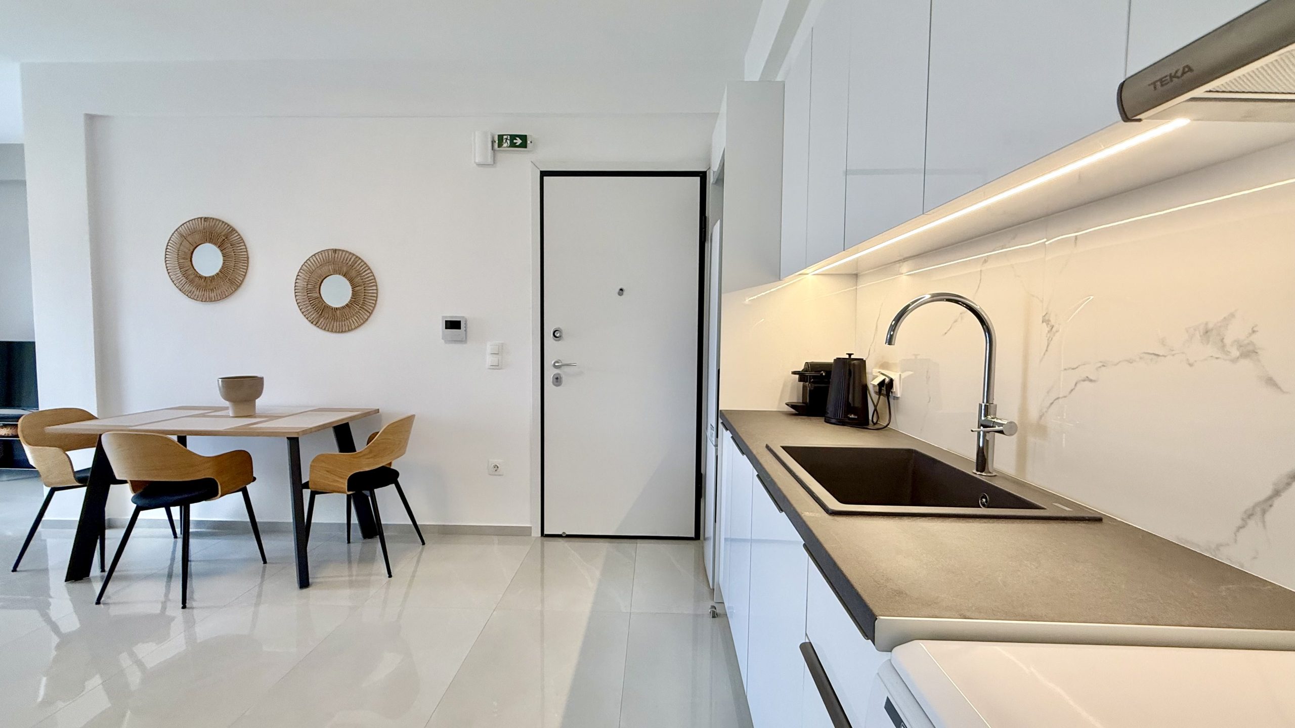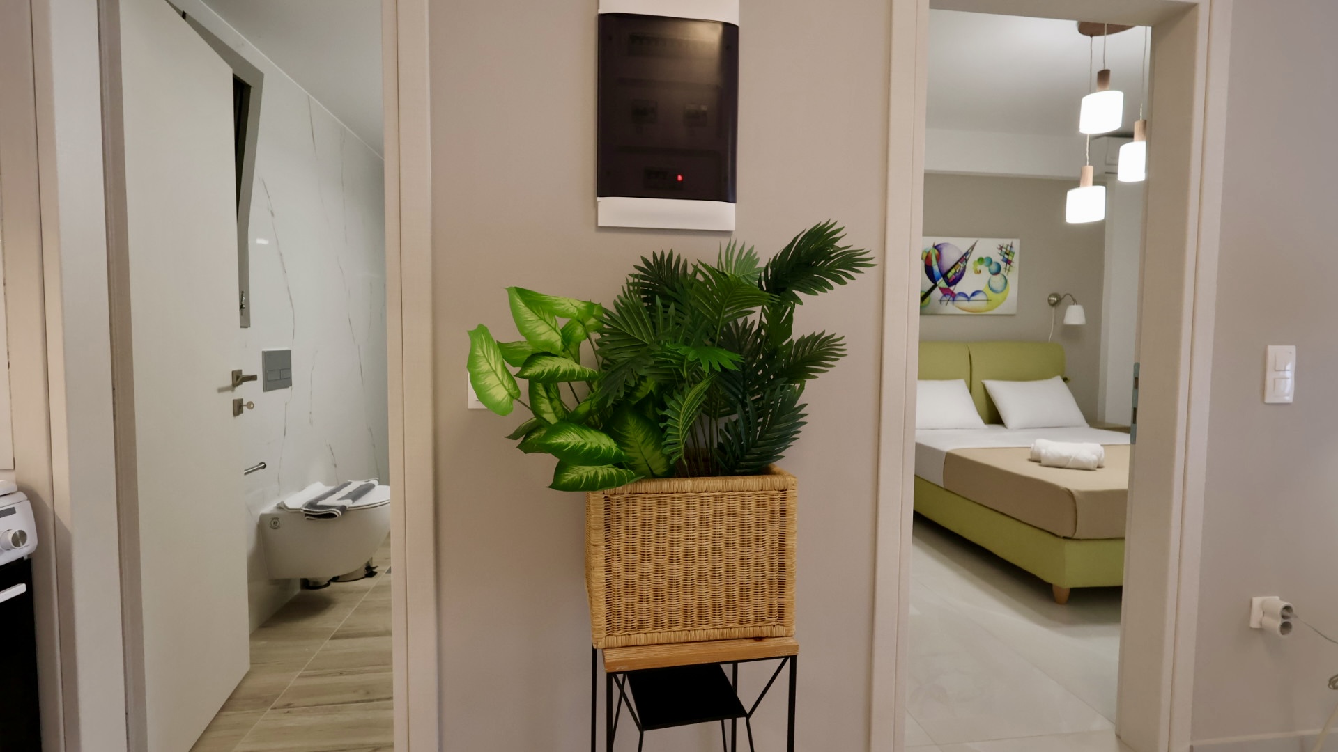 - Παροχές: Wifi, Βραστήρας, Έξυπνη τηλεόραση, Ζεστό νερό, Ηλεκτρική εστία, Ηλεκτρικός φούρνος, Κλιματισμός, Κλινοσκεπάσματα, Κουβέρτες κρεβατιού, Κρεμάστρες, Μηχανή καφέ, Μπαλκόνι, μπαλκονόπορτες με διπλά τζάμια, Μπιστολάκι, Ντουλάπα, Πετσέτες, Πλυντήριο ρούχων, Ποτήρια κρασιού, Σαμπουάν, Σίδερο ρούχων, Σιδερώστρα, Στεγνωτήρας μαλλιών, Στεγνωτήριο, Ταμπλέτες πλυντηρίου, Τηλεόραση, Τραπεζαρία, Τραπέζι φαγητού, Υπαίθρια τραπεζαρία, Χαρτί υγείας, Ψυγείο