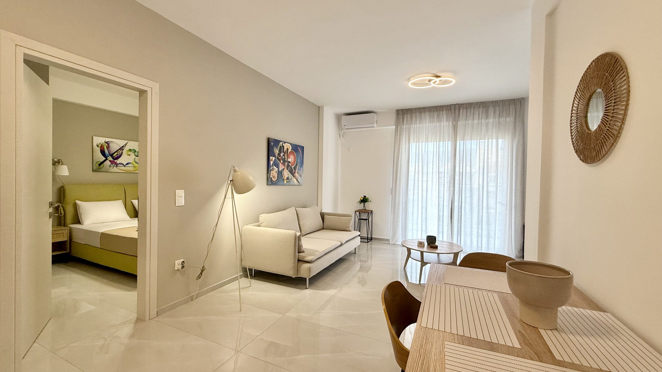Καλωσορίσατε στο Navia, ένα ολοκαίνουργιο διαμέρισμα 53 τ.μ. στον 2ο όροφο σύγχρονης πολυκατοικίας, μόλις λίγα λεπτά από το λιμάνι της Καλαμάτας. Διαθέτει ένα υπνοδωμάτιο με άνετο διπλό κρεβάτι, φωτεινό σαλόνι ενιαίας διαρρύθμισης με πλήρως εξοπλισμένη κουζίνα και όμορφο μπαλκόνι. Το διαμέρισμα είναι ιδανικό για ζευγάρια, επαγγελματίες ταξιδιώτες ή επισκέπτες που θέλουν να απολαύσουν τη διαμονή τους με άνεση και στυλ.