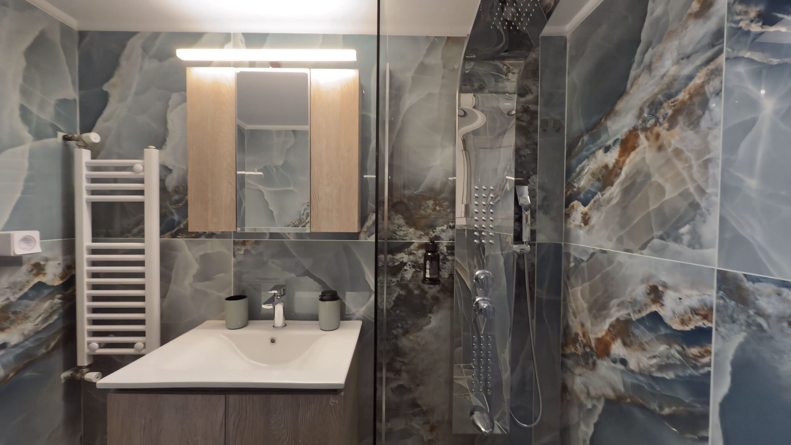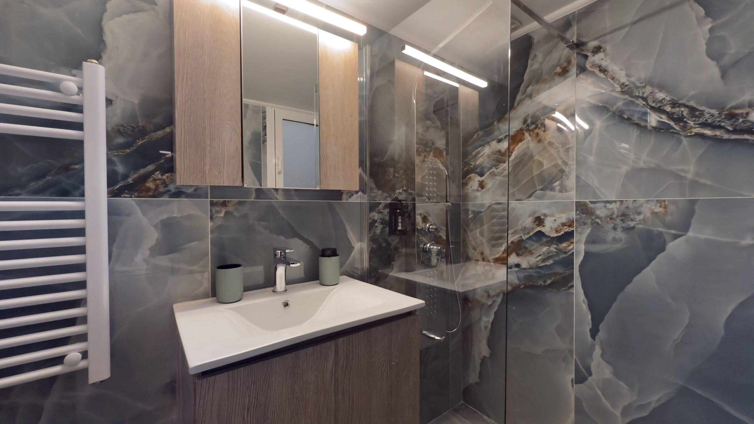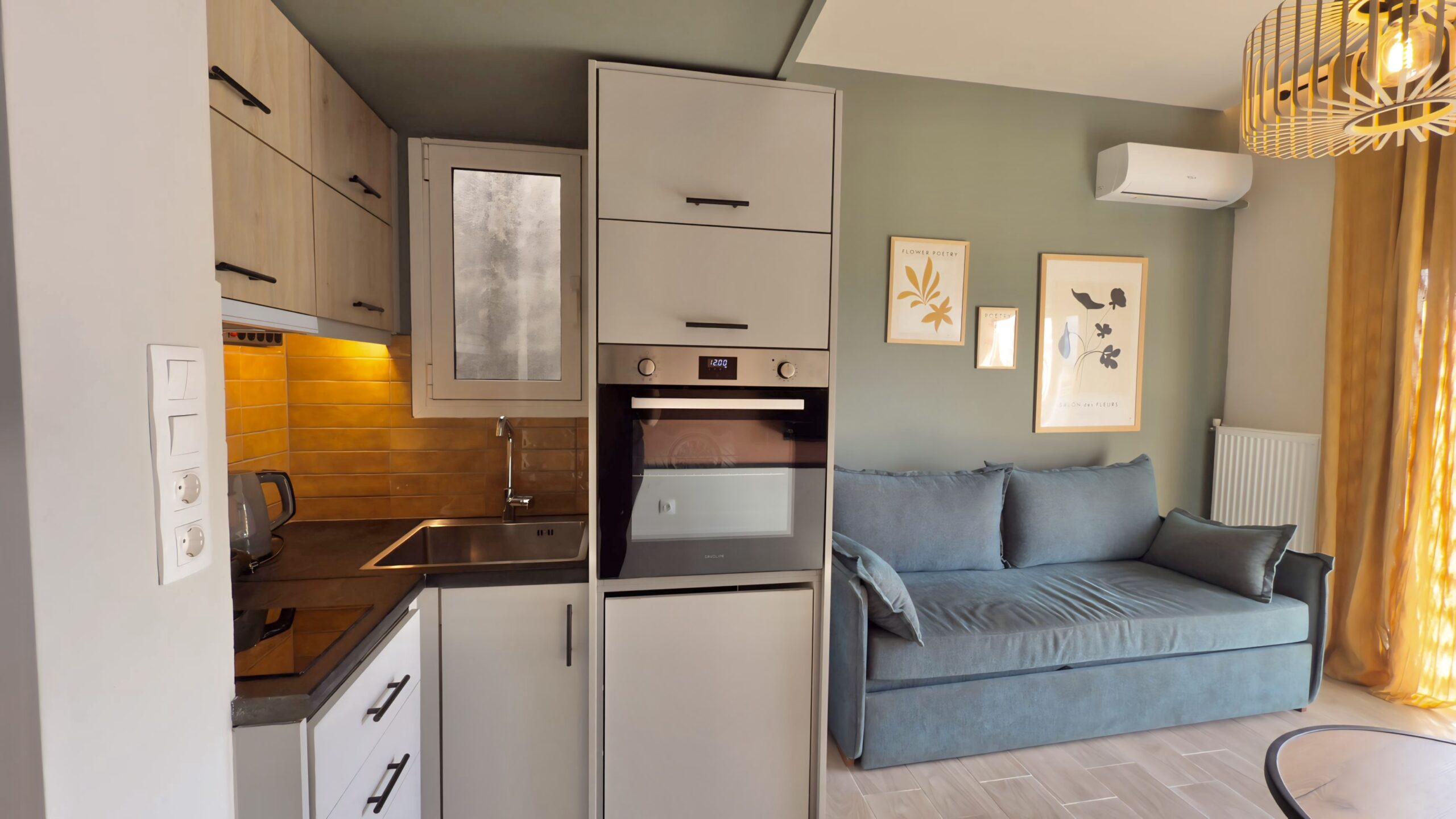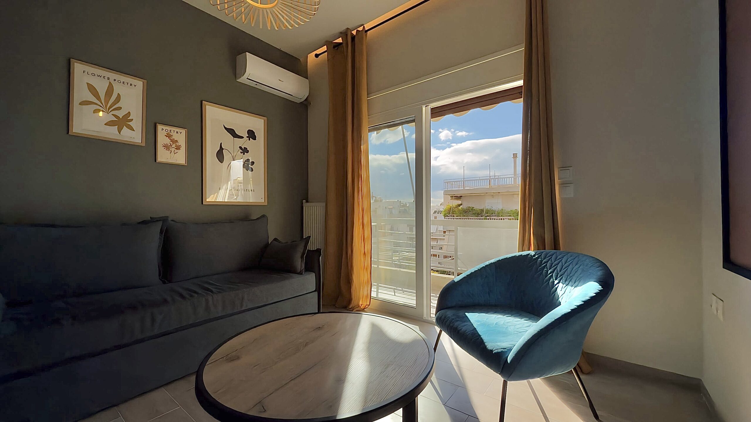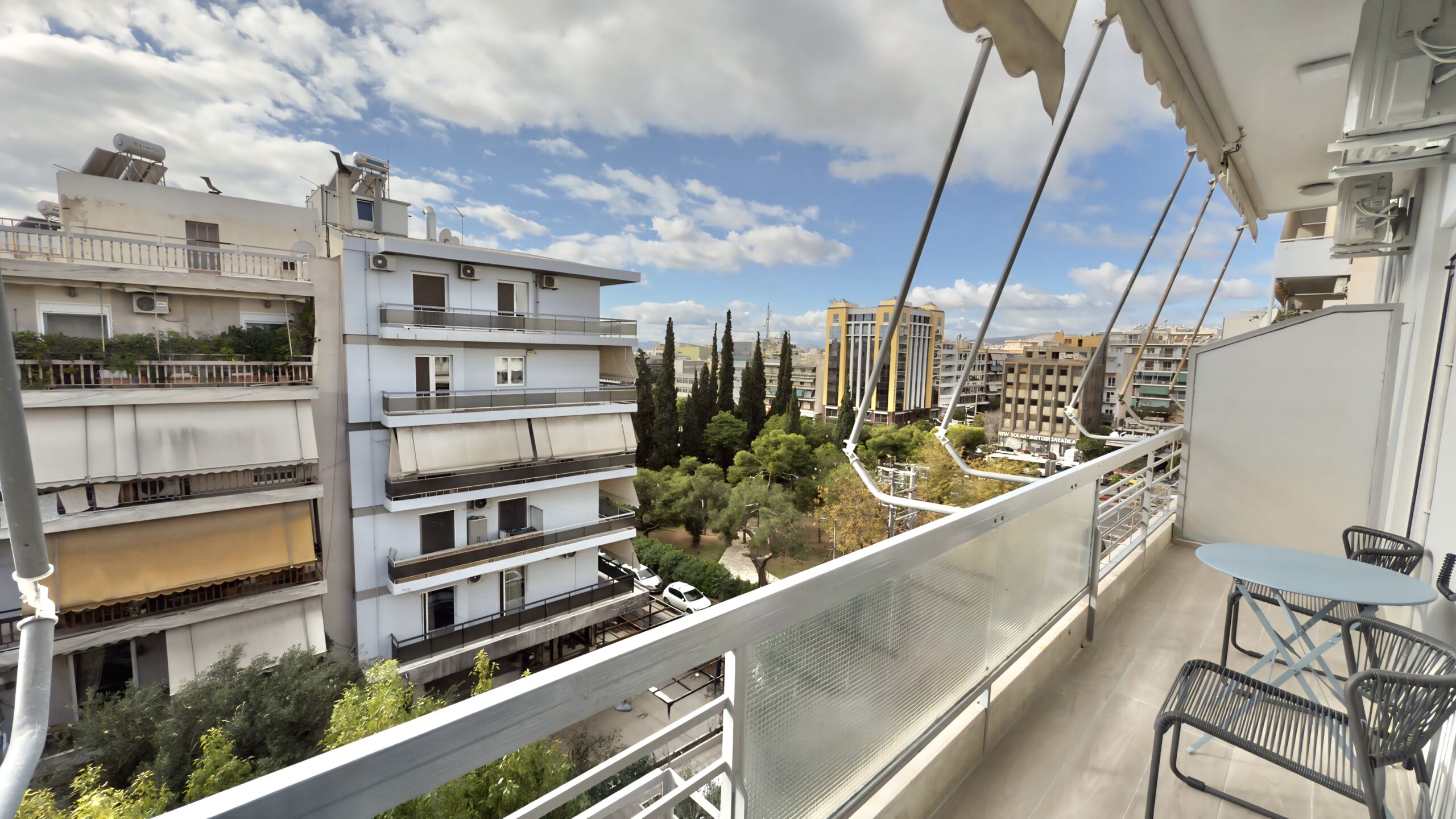 Η πλήρως εξοπλισμένη κουζίνα και το μοντέρνο μπάνιο παρέχουν όλα όσα χρειάζεστε για μια άνετη διαμονή, ενώ η τζαμαρία επιτρέπει στο φυσικό φως να γεμίσει το χώρο. Από τα παράθυρα του καταλύματος, απολαμβάνετε υπέροχη θέα στην πόλη, δημιουργώντας την τέλεια ατμόσφαιρα για χαλάρωση μετά από μια μέρα εξερεύνησης της Αθήνας.